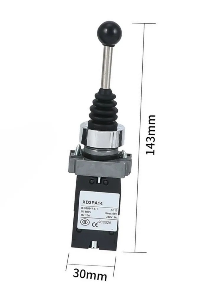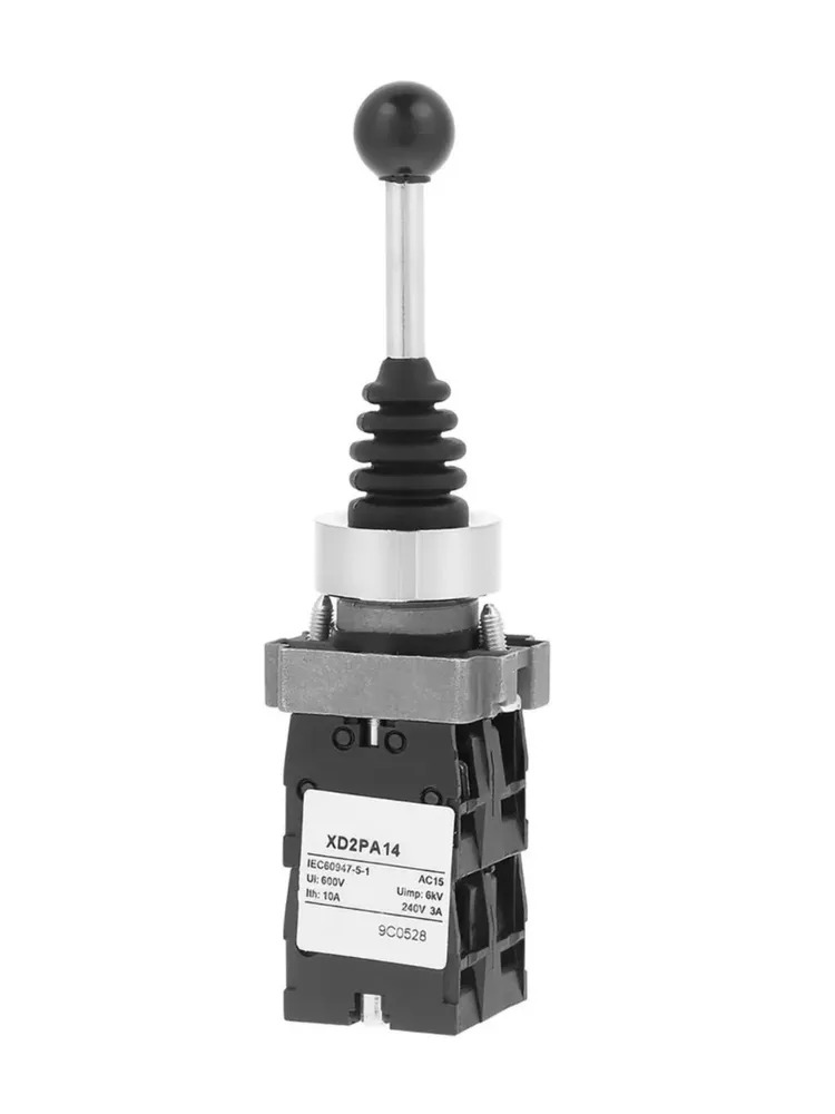 Промышленный джойстик XD2-PA14 предназначен для управления перемещением различных механизмов и установок. Обеспечивает движение в четырёх направлениях — вверх, вниз, влево, вправо, с фиксацией в каждом положении. Надёжный и удобный в эксплуатации, подходит для применения в станках, подъёмных механизмах и других системах промышленного управления.