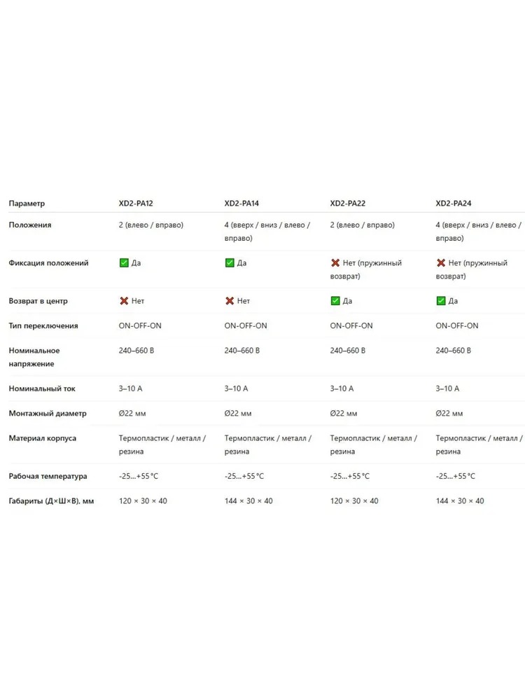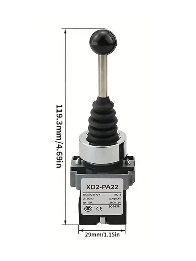 XD2PA22 — это компактный и надежный промышленный джойстик, предназначенный для управления различными механизмами и системами. Имеет четырехнаправленную схему работы (вверх, вниз, влево, вправо) с мгновенным возвратом в исходное положение после отпускания.
