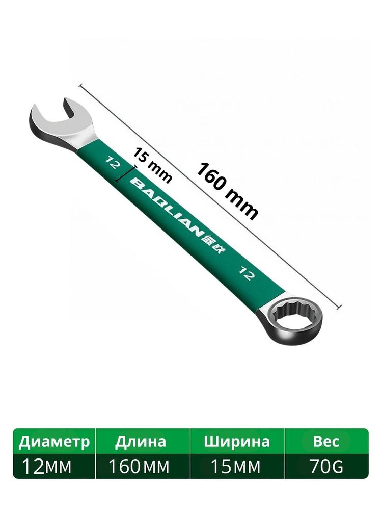 Комбинированный тип: с одной стороны — рожковый, с другой — накидной (12-гранный профиль).