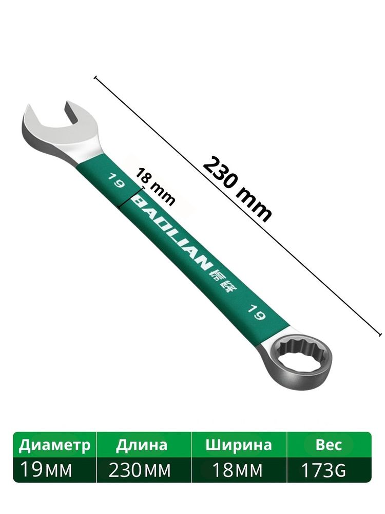 Комбинированный тип: с одной стороны — рожковый, с другой — накидной (12-гранный профиль).