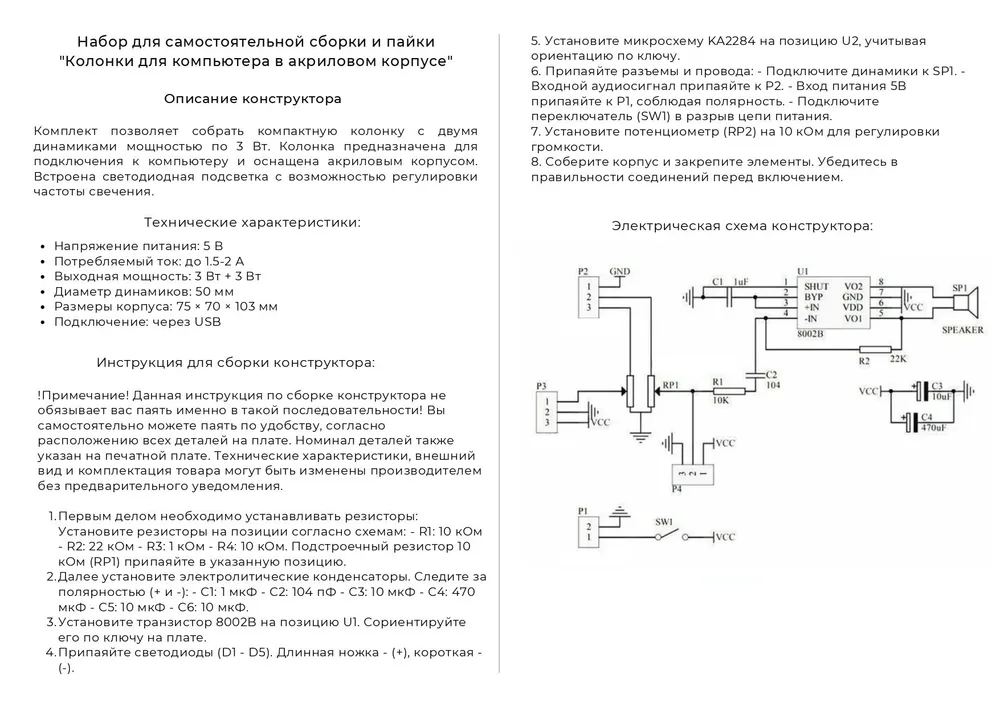 * Комплект для сборки: печатная плата с набором радиодеталей