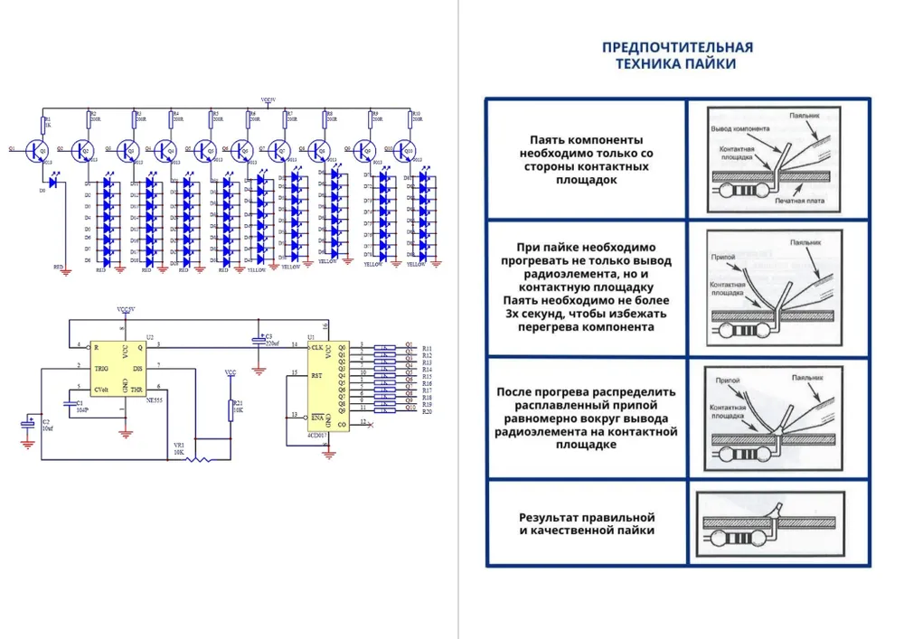 ✔ Отлично подходит для обучения пайке — все элементы подписаны прямо на плате.