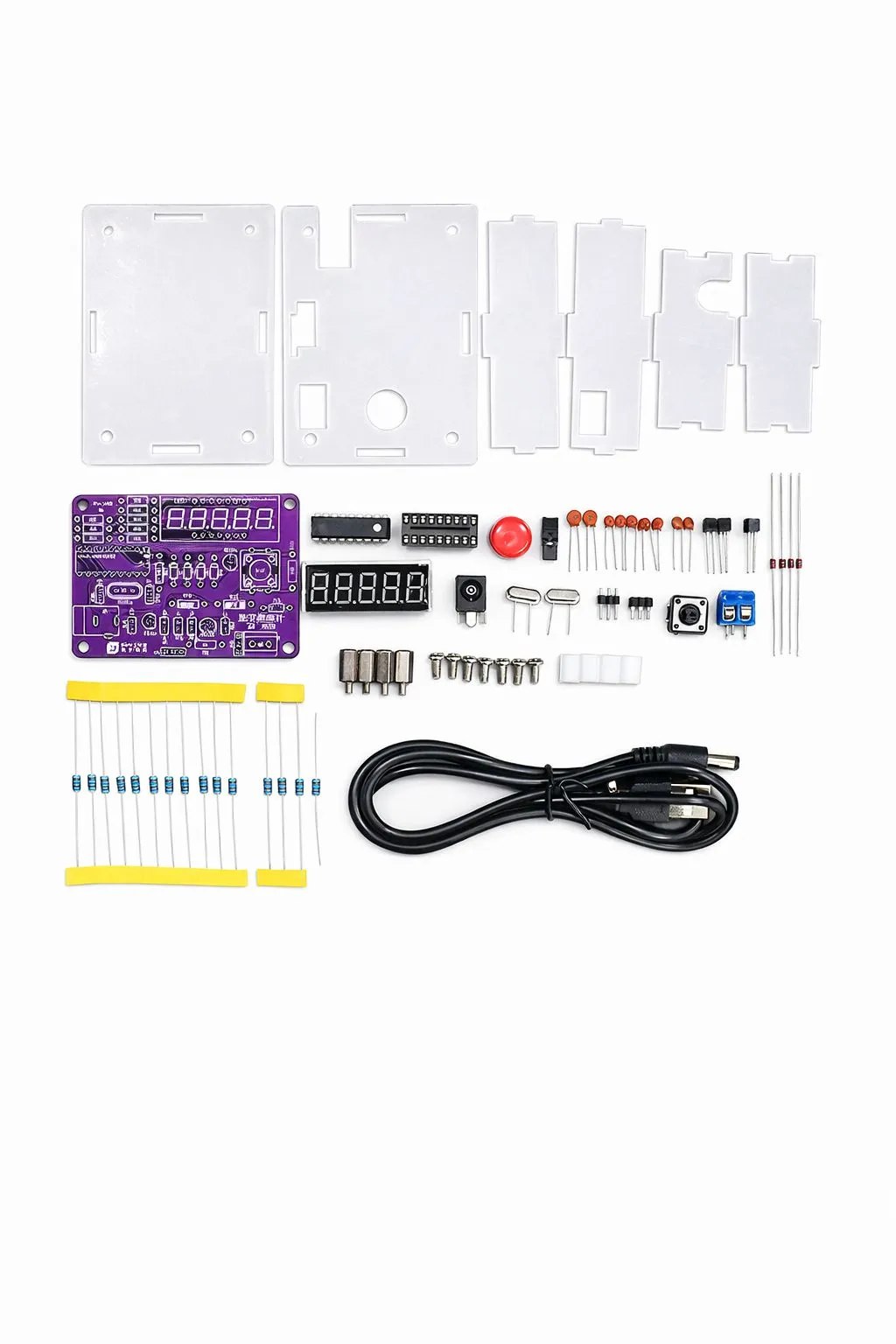 Набор поставляется в разобранном виде и предназначен для самостоятельной пайки. В комплект входят все необходимые компоненты: плата, микроконтроллер, индикатор, пассивные элементы, кварцы, разъёмы, корпус и крепёж. Подробные инструкции и схемы позволяют легко собрать устройство даже начинающим.