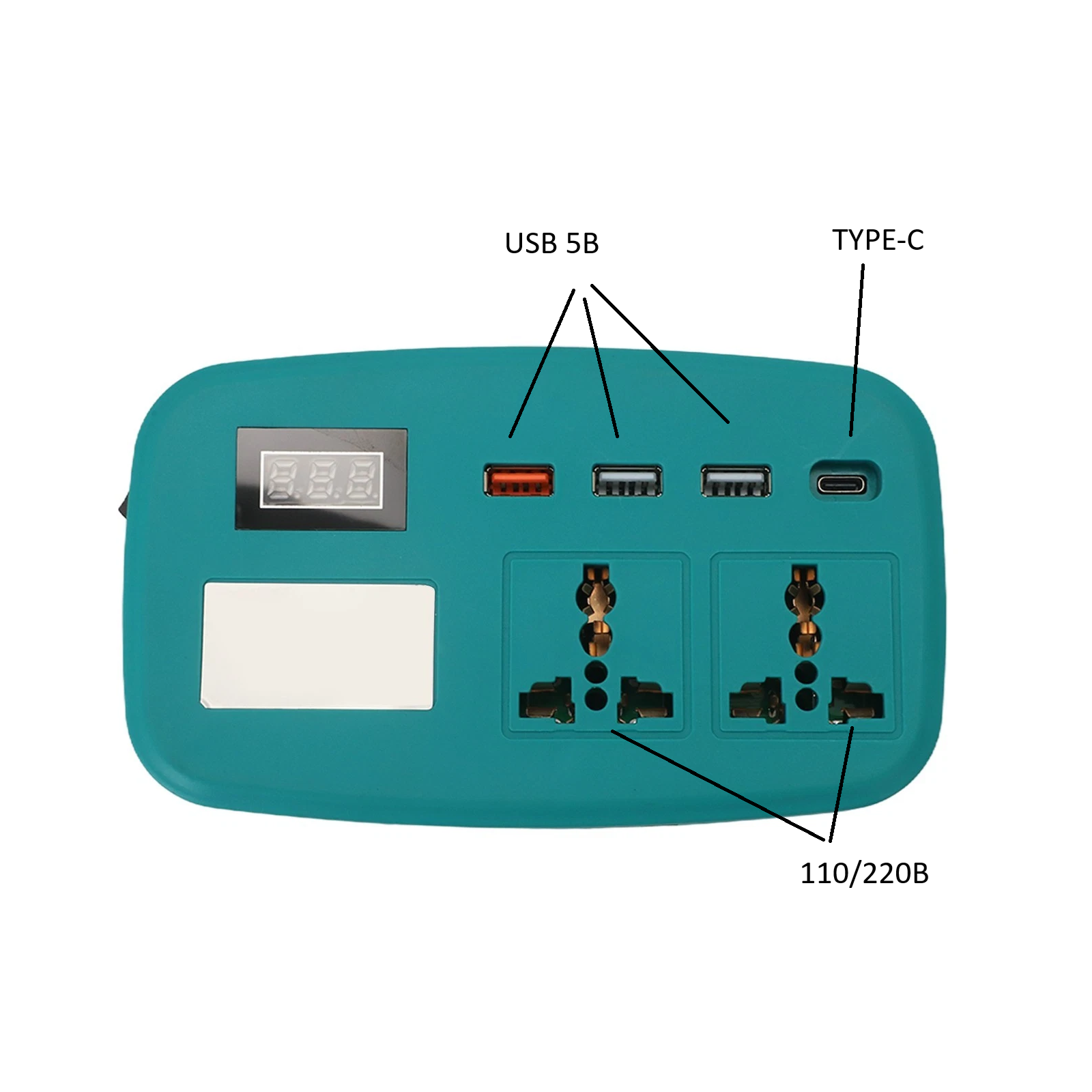 Инвертор преобразовывает напряжение DC 18-21В от Li-Ion аккумулятора в 220В переменного тока (АС) или в 5В USB, что подходит для всех видов работ на открытом воздухе и для мелкой бытовой техники.