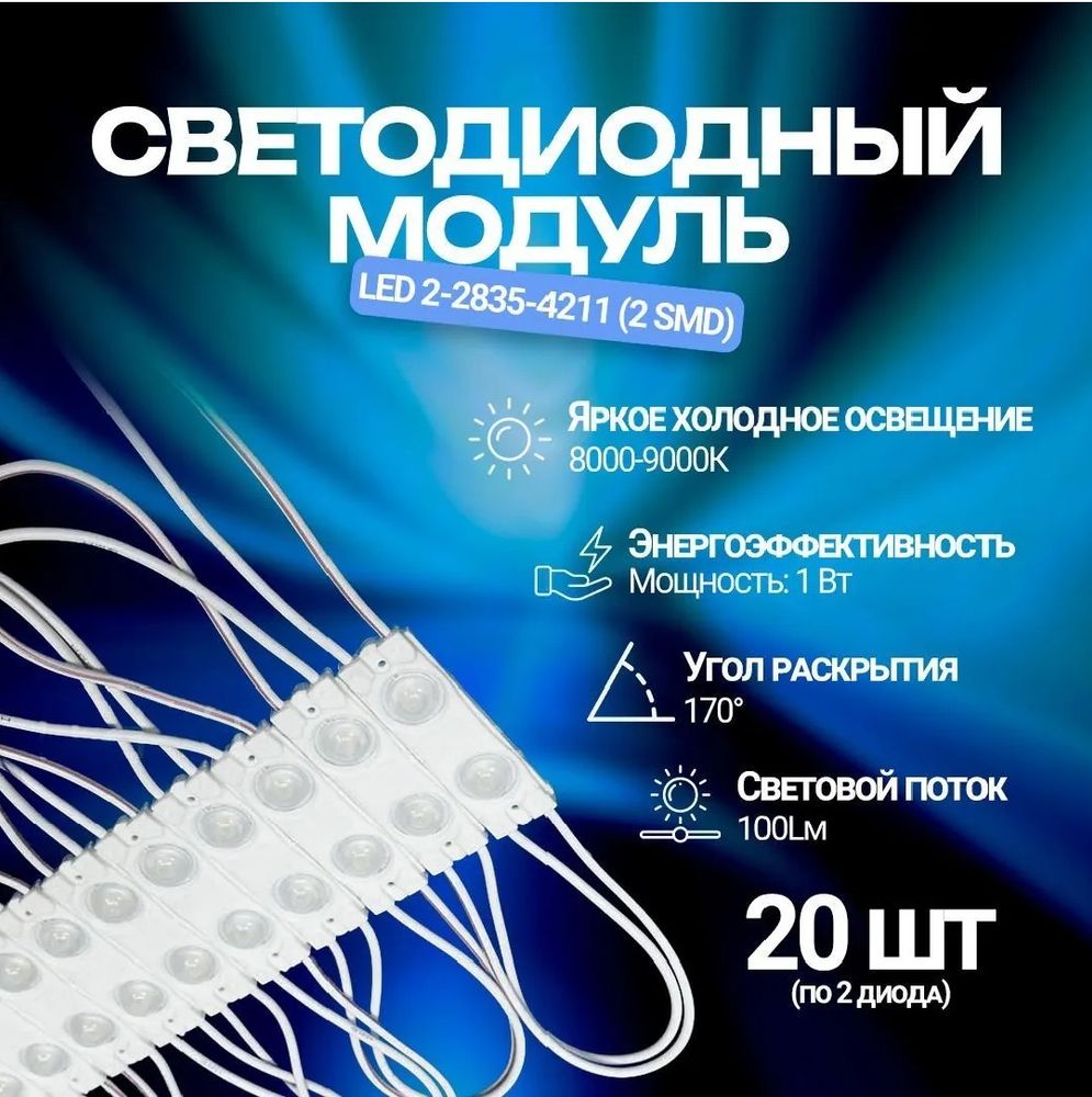 Светодиодный модуль LED 2-2835-4211 (2 SMD) холодный белый 20шт.